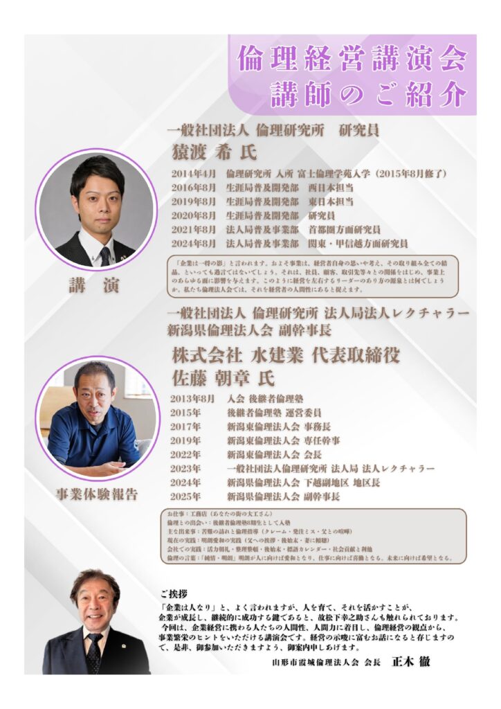 令和8年度倫理経営講演会 企業は人なり〜経営者が変われば会社は変わる〜
